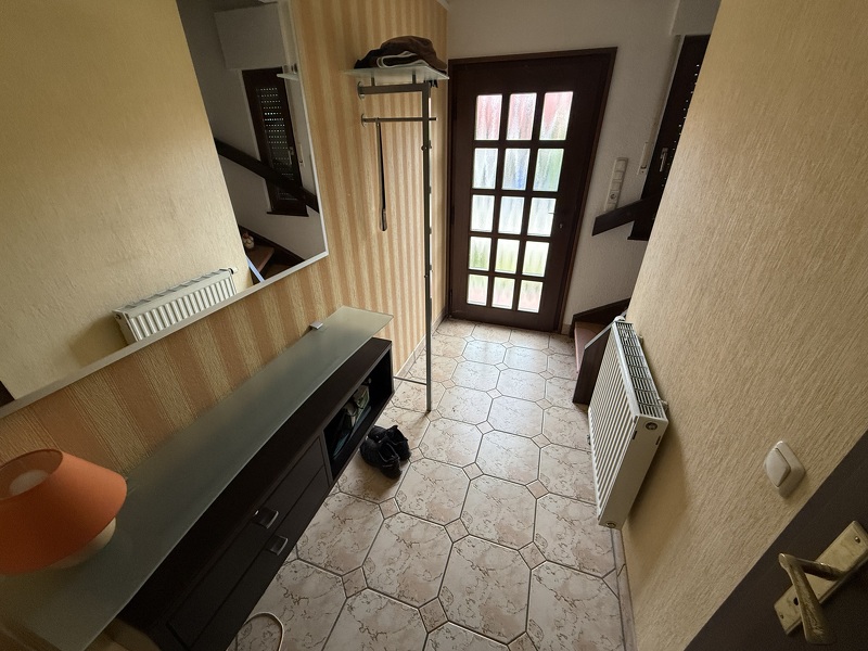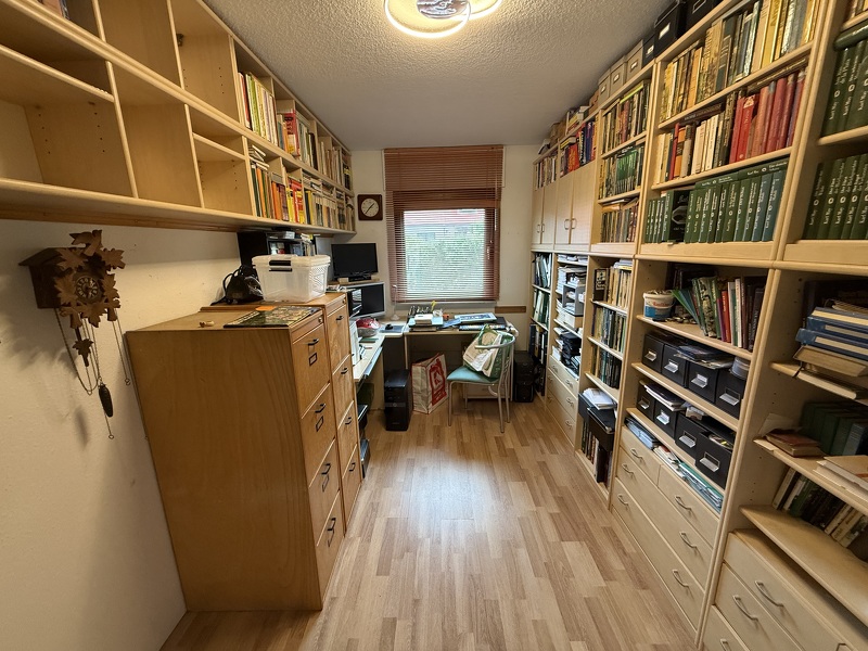 - Erdgeschoss: Wohnzimmer mit Gartenzugang, Küche, Arbeitszimmer, Flur und Badezimmer mit Dusche